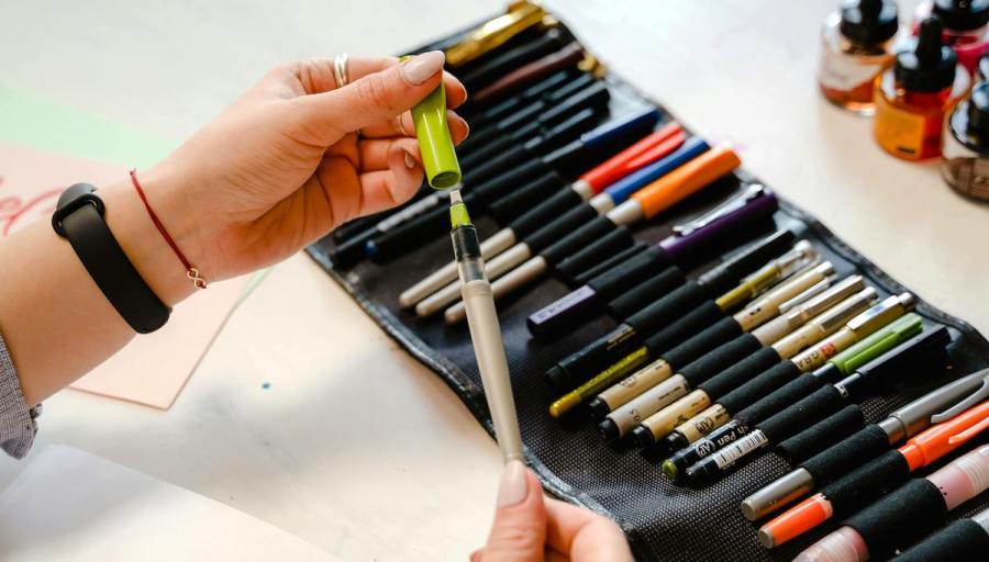 pen and a bundle of paper